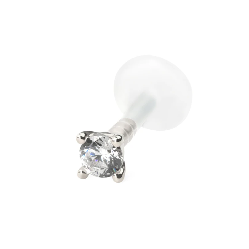 14 karat massiv guld labret med sten i bioplast stav-14K hvidguld / PTFE
