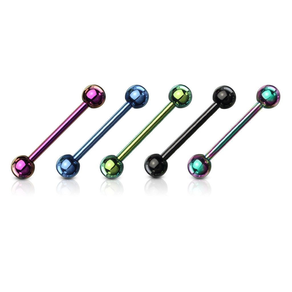 Du får fem højkvalitets tungepiercinger, alle belagt med ægte titanium over kirurgisk stål, i fire forskellige farver og én i hele regnbuen.