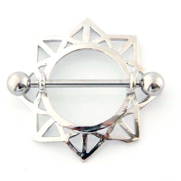 Denne brystpiercing er lavet i kirurgisk stål og flot designet som en mellemting af en blomst og en sol.