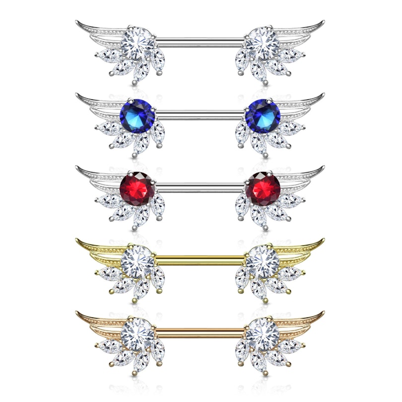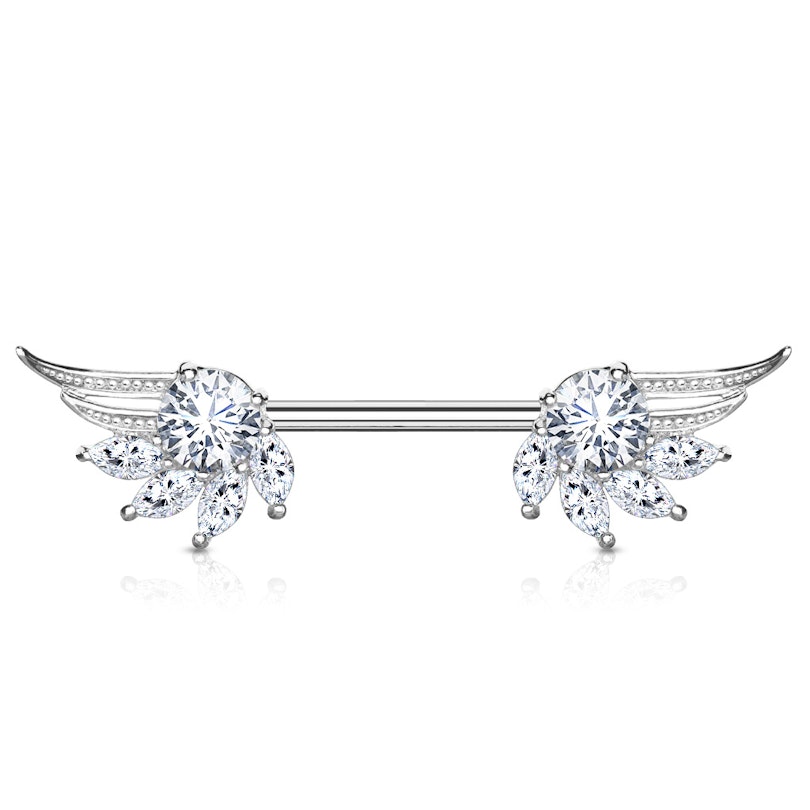 Brystpiercing med englevinger og marquise sten