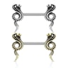 Du kan vælge dette smykke i to farvevarianter. Her er det farven på slangerne der er afgørende, for selve staven vil altid være blank og lavet af kirurgisk stål. Slangerne er lavet af messing og er efterfølgende blevet belagt med en af de to valgfrie farver.