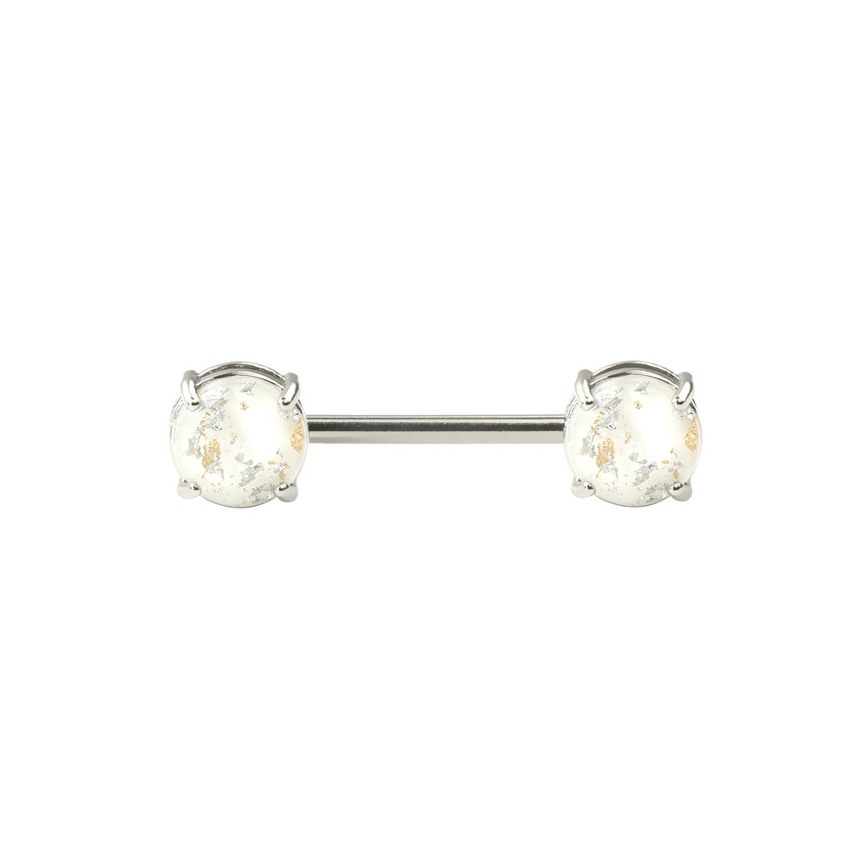 Her kan du få en brystpiercing med en sten i hver ende af staven. Disse sten minder lidt om en lavalampe, bare uden de flydende bevægelser. Stenene er nemlig lavet af resin for at give stenene et lava look. Derved har stenene også fået et utroligt flot farvespil, hvor den indeholder nærtliggende farver af den hovedfarve du vælger til stenene. Du kan nemlig selv vælge farven på stenene, der sidder i smykket - her kan du eksempelvis vælge en blå stenfarve, eller en lilla stenfarve.