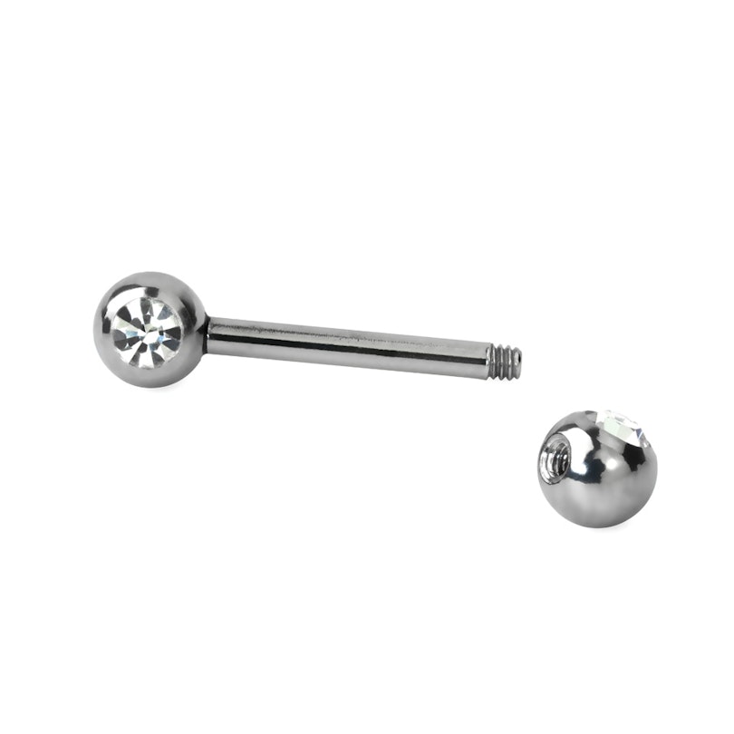 Denne brystpiercing er simpel i designet, da den blot består af en lige stav med to kugler - En i hver ende. Begge kugler er forsynet med en enkelt sten, der ikke som på så mange andre modeller, peger i stavens retning, men derimod ud fra staven, hvilket gør smykket idéelt til brug i en brystpiercing, da man så kan se stenene. Det kræver naturligvis at staven ikke har vendt sig, så stenene vender ind mod kroppen.