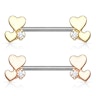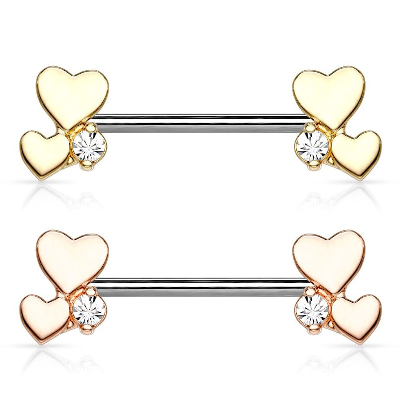 Brystpiercing med to hjerter og en sten i hver ende