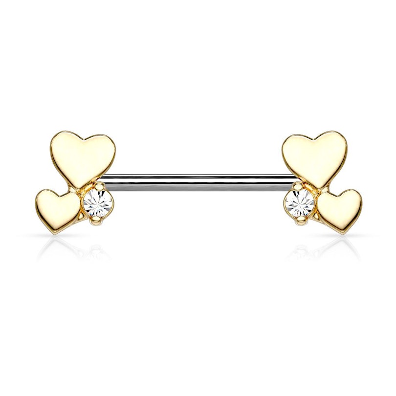 Navn: Brystpiercing med to hjerter og en sten i hver ende