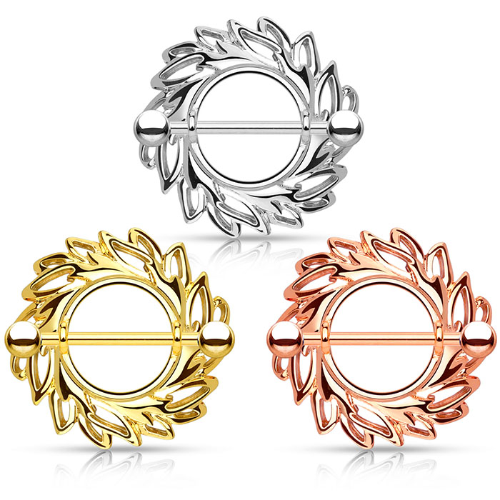 Hvem siger at man ikke kan hvile på laurbærrene, og samtidig se pivfræk ud, næsten helt uden at skulle gøre noget for det? For det kan du nemlig sagtens, når du bliver den heldige ejer af dette super lækre brystskjold, som har en hel krans af de skønne blade, der på næsten ærbødig vis, danner ramme om din nipplepiercing.