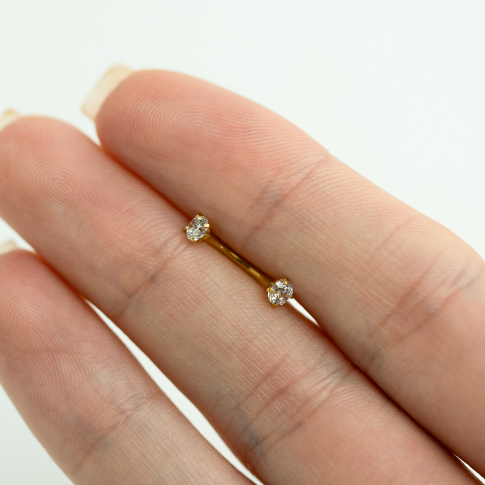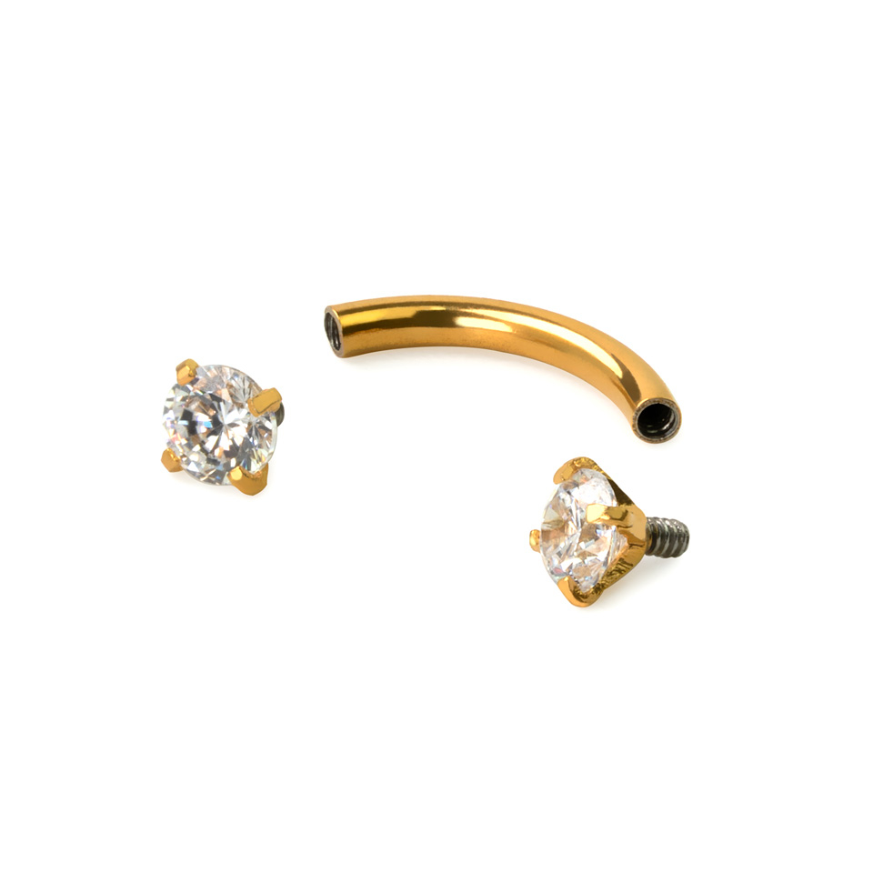 Smykket har indvendigt gevind, som gør at det er meget skånsomt at sætte i din piercing. Her sættes stenens fatning ned i staven, og ligger ikke ude omkring staven som de ellers gør ved et udvendigt gevind. Dette gør at dit piercinghul ikke bliver udsat for de skarpe kanter der kan være på et smykke med udvendigt gevind.