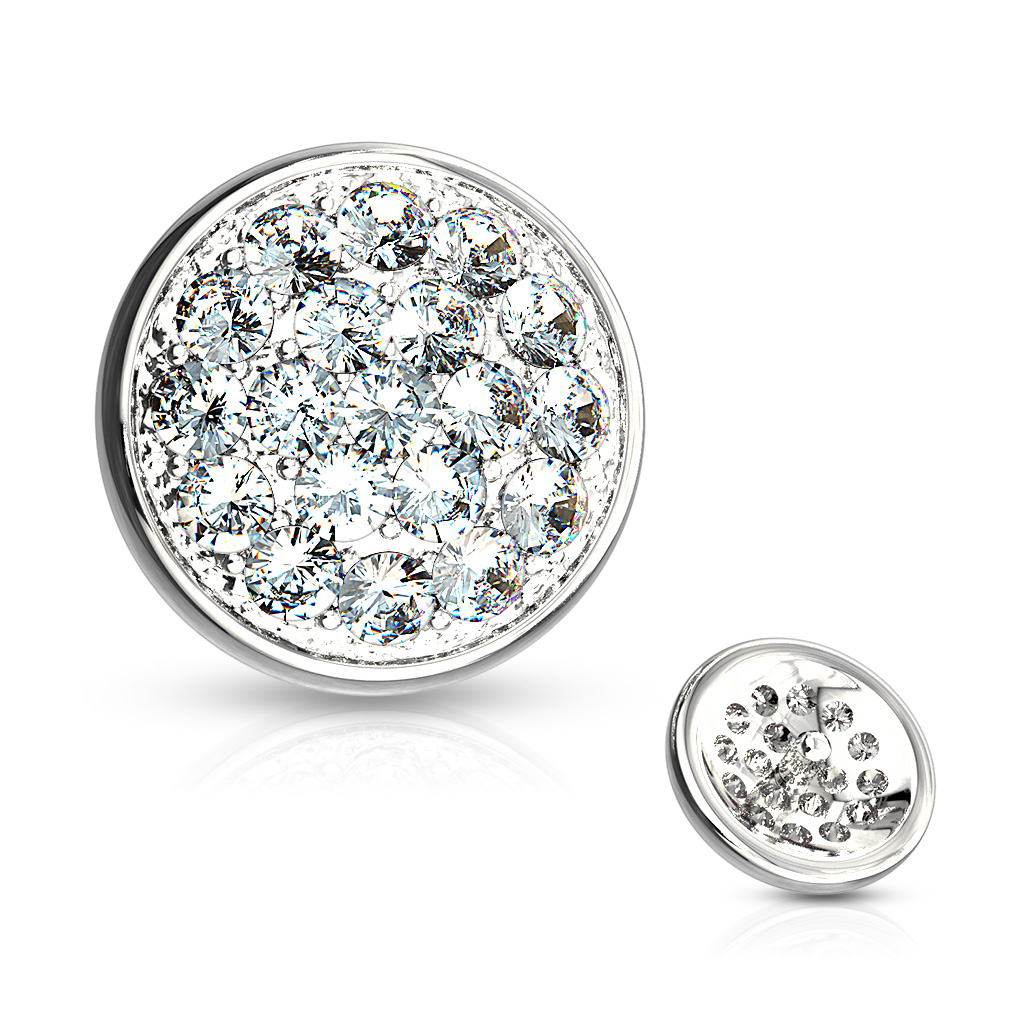 Sten, sten og atter sten - der sidder rigtig mange sten og pryder denne dermal, som du kan se på billedet længere oppe. Det er ikke fordi vi går meget op i sten, men der sidder altså hele 19 små klare sten på dette smykke - hvis man ikke kan få dækket sit behov for klare sten på sit smykke her, så har man et alvorligt stenproblem. Det kan godt lyde lidt overdrevent, at sætte 19 klare sten på et lille smykke, der ikke måler mere end 6 mm. Men det klæder faktisk smykket utroligt godt.