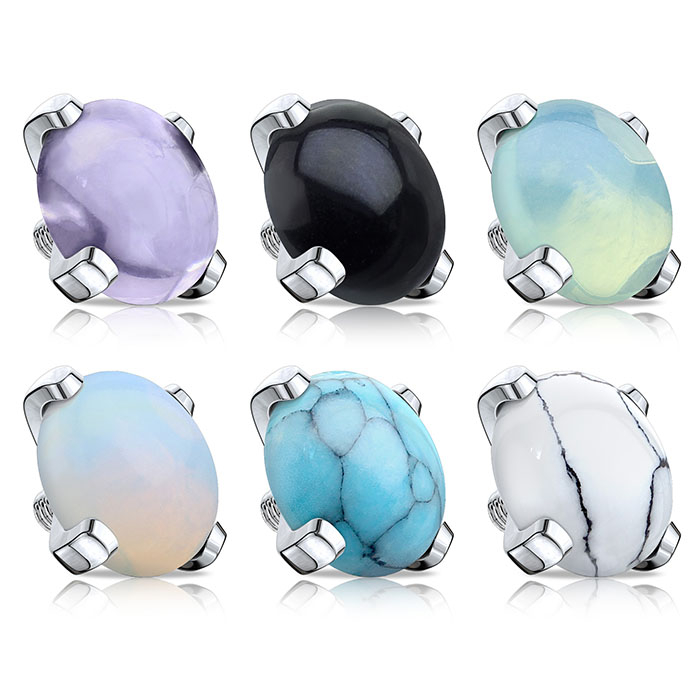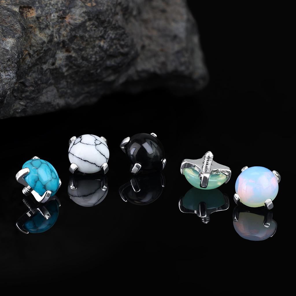 Fangarmene på smykket holder fast i en rund sten - denne sten kan du selv vælge stentypen på. Du kan vælge mellem flere spændende stentyper, som f.eks. opalite eller ametyst - hver stentype giver smykket et helt nyt look og udtryk. Stenen i smykket måler 5 mm., hvilket gør, at den er stor nok til at skabe et blikfang med den helt rigtige placering. Stenen har dog også en størrelse som kan gøre den diskret, hvis det er det man kræver.