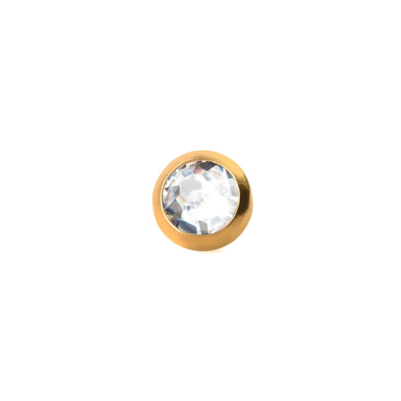 Dette smykke til en dermal anchor piercing består af en lille rund plade, hvori der sidder en flot klar sten.
