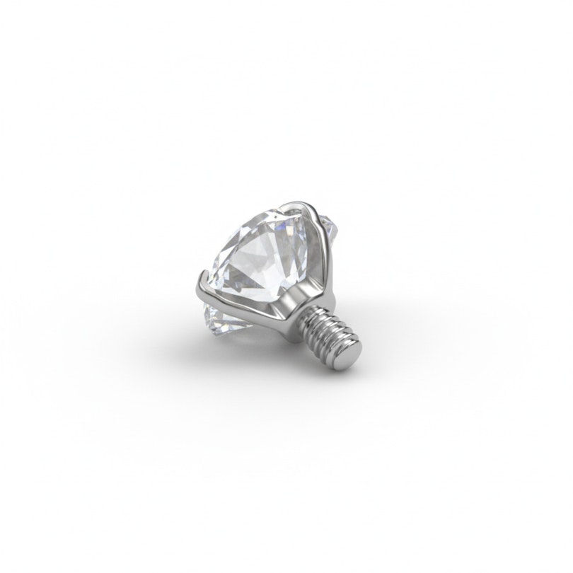 Nogle hjerter bæres uden på tøjet, men det her sidder endnu tættere. Denne dermal top af titanium med hjertesten er prdyet med en klar kubisk zirkonia i en enkel tandsætning, der giver et blødt glimt.