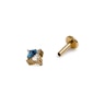 En diamantformet titaniumlabret med blå sten forener geometri og attitude. Den diamantformede ramme holder den iøjefaldende blå sten, der sidder sikkert fast med tænder. Fås i farven guld eller sølv og er designet til at skille sig ud helt uden backup.