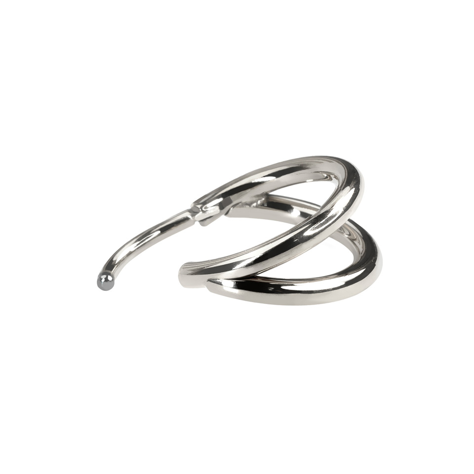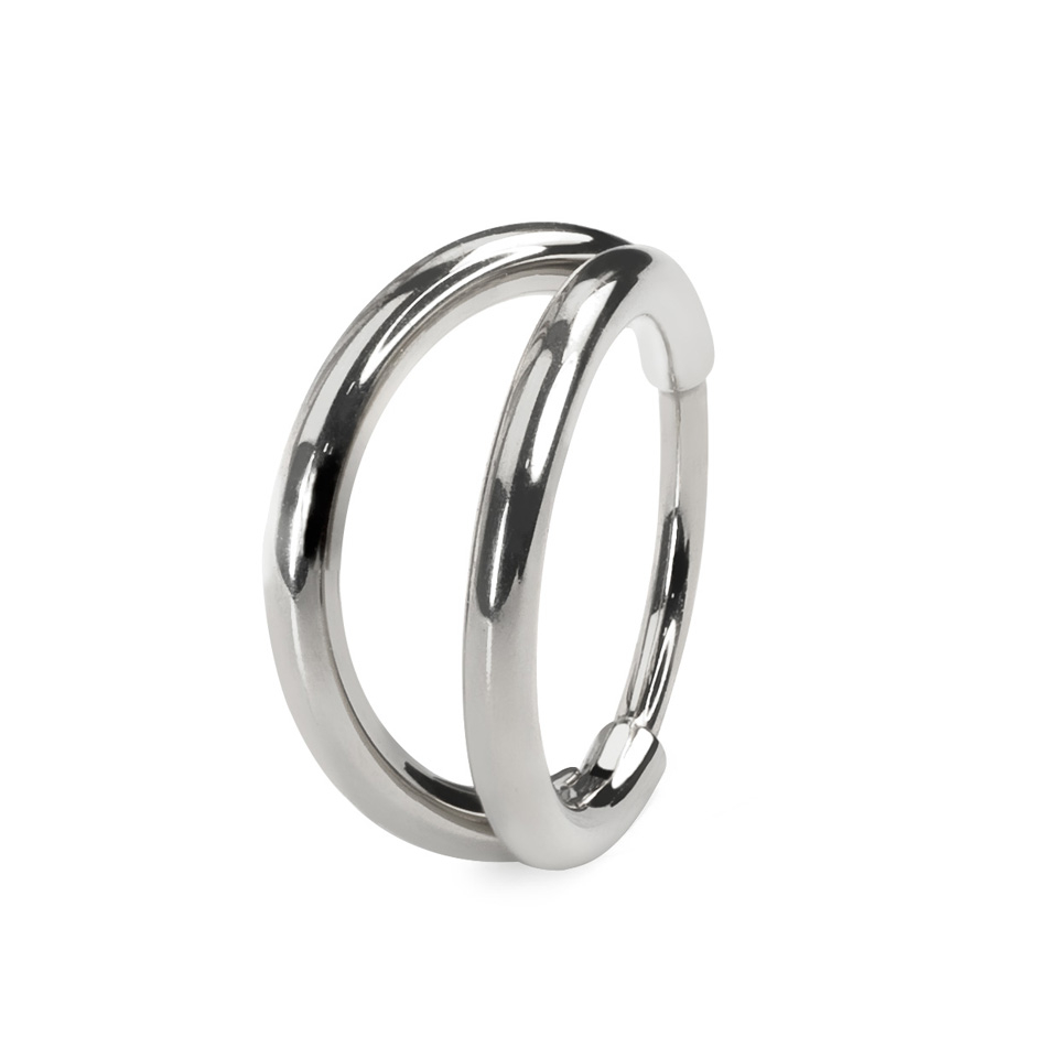 Denne elegante ring har to omkredse, der mødes i én igennem din piercing, og giver dermed samme look som to ringe.
