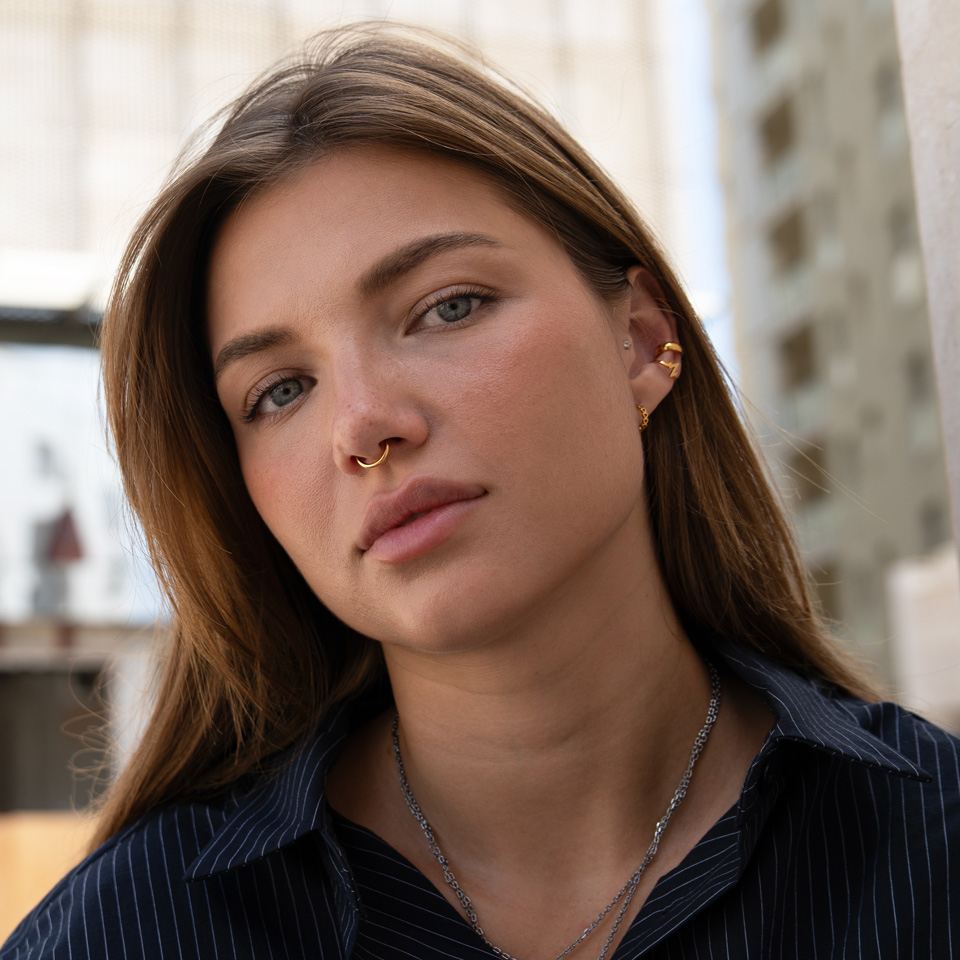 Denne alsidige ring fås i et komplet udvalg af størrelser, så du kan helt sikkert finde det helt perfekte fit til de fleste piercinger, f.eks.: