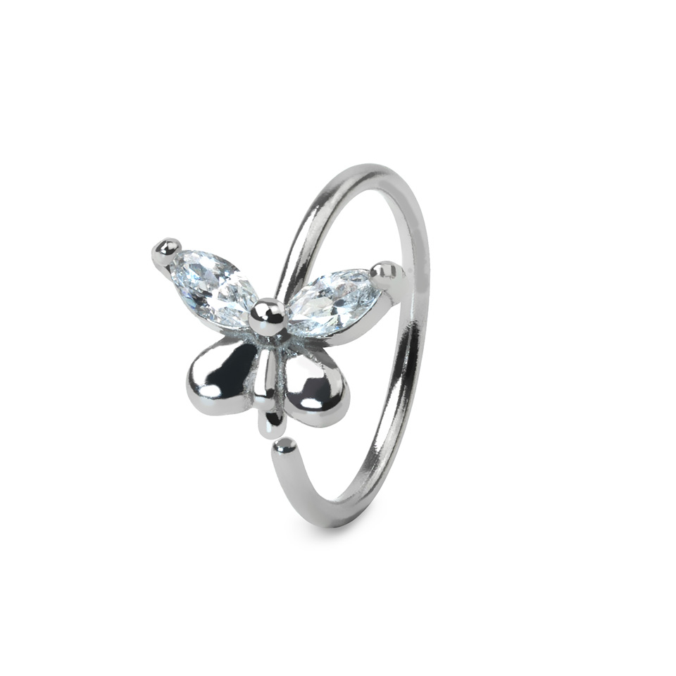 Ringen har en tynd trådtykkelse (0,8 mm) og lille diameter, så den charmerende sommerfugl vil se sød ud i din næse- eller ørepiercing, inkl. (men ikke begrænset til) næsefløj, tragus og helix.