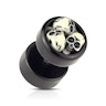 Denne fake plug er noget ud over det sædvanlige. Tre fede 3D skulls stikker ud fra dette piercingsmykke og får det til at se ekstra ondt ud.