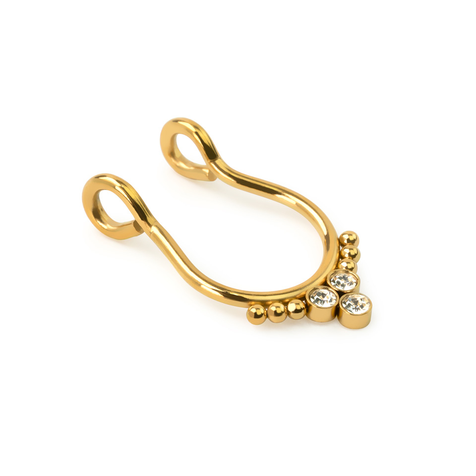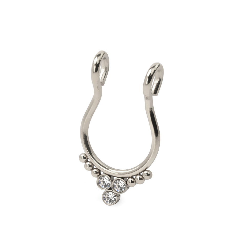 Clip-on smykker er den perfekte måde at opgradere din stil med det samme. En fake septumring sættes fast i septum, præcis der hvor en ægte piercing ville sidde, så ingen kan se forskel! Dette smykke er ikke kun smukt, det er også lavet af 316L kirurgisk stål, hvilket er et sikkert piercingsmykkemateriale af højeste kvalitet.