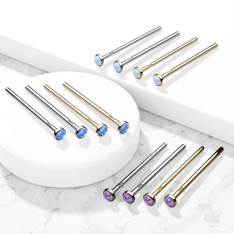Staven er 19 mm. lang og kan vælges i to tykkelser. Samtidig kan du også vælge farven på opalstenen der sidder i fronten af staven. Opalen er ikke en ægte opal, da de ofte er for skrøbelige til smykkebrug. Denne opal er syntetisk og egner sig derfor godt til brug i smykker.