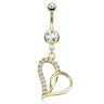 Navn: Guldbelagt navlepiercing med hjerte og klare sten
