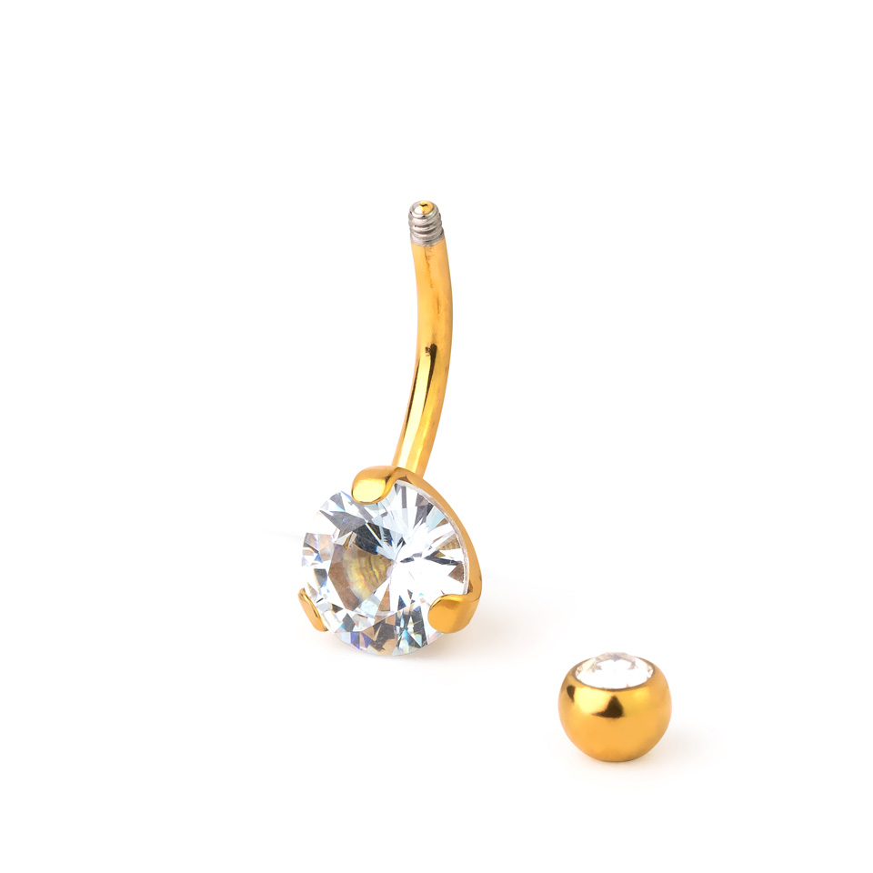 Guldbelagt navlepiercing med stor sten