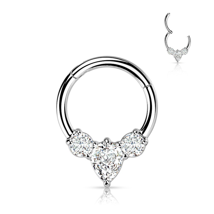 Navn: Hængslet ring af kirurgisk stål med dråbeformet centersten