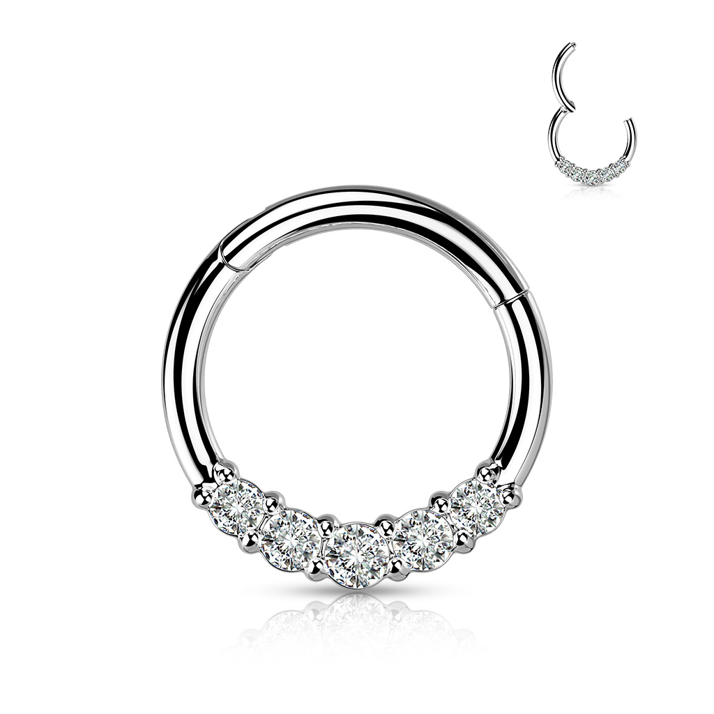 Navn: Hængslet ring af kirurgisk stål med fem sten
