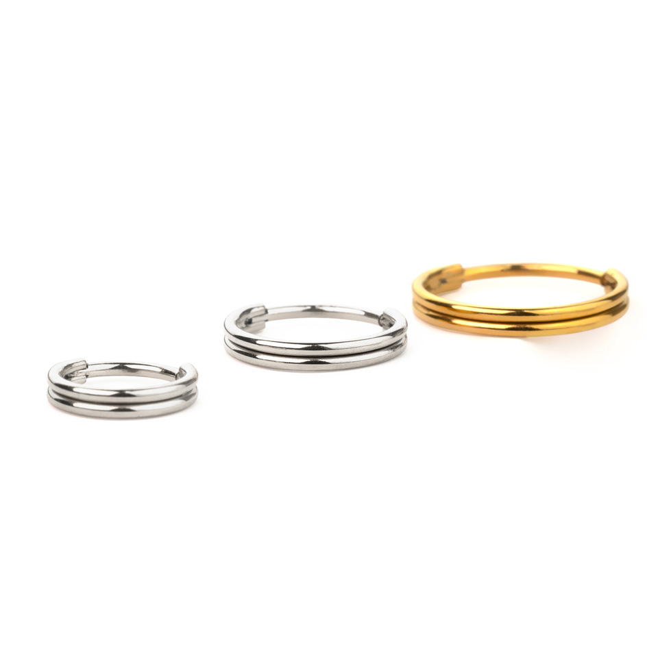 Denne hængslede segmentring ligner to ringe side om side, men kun én ring går faktisk igennem din piercing.