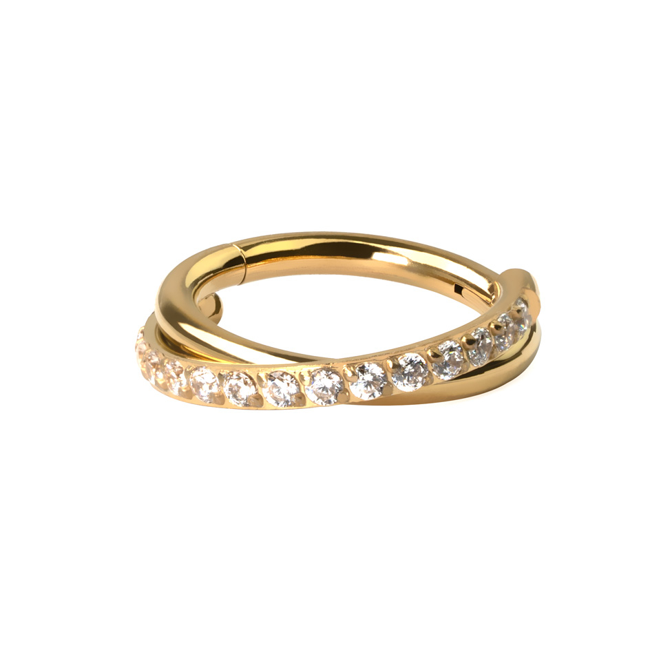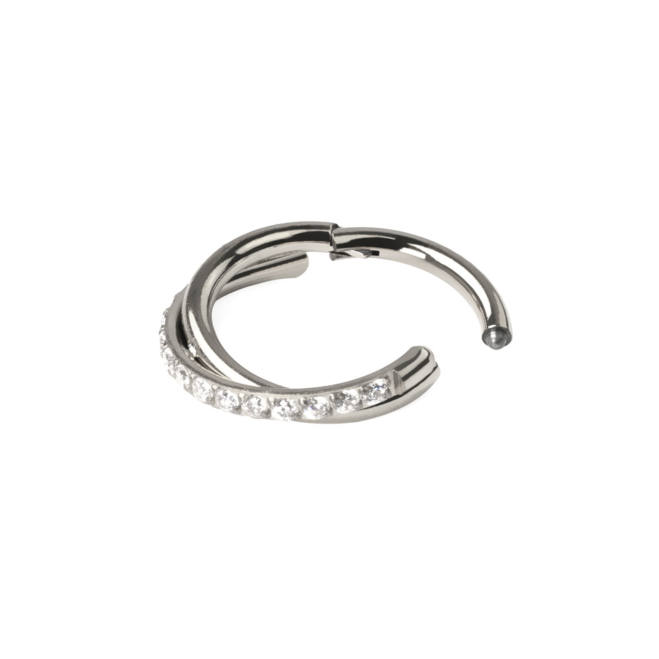 Ringens stenbesatte krydsdesign er perfekt til at tilføje elegant glitter til din ørepiercing, f.eks. helix, daith, rook og endda øreflippen.