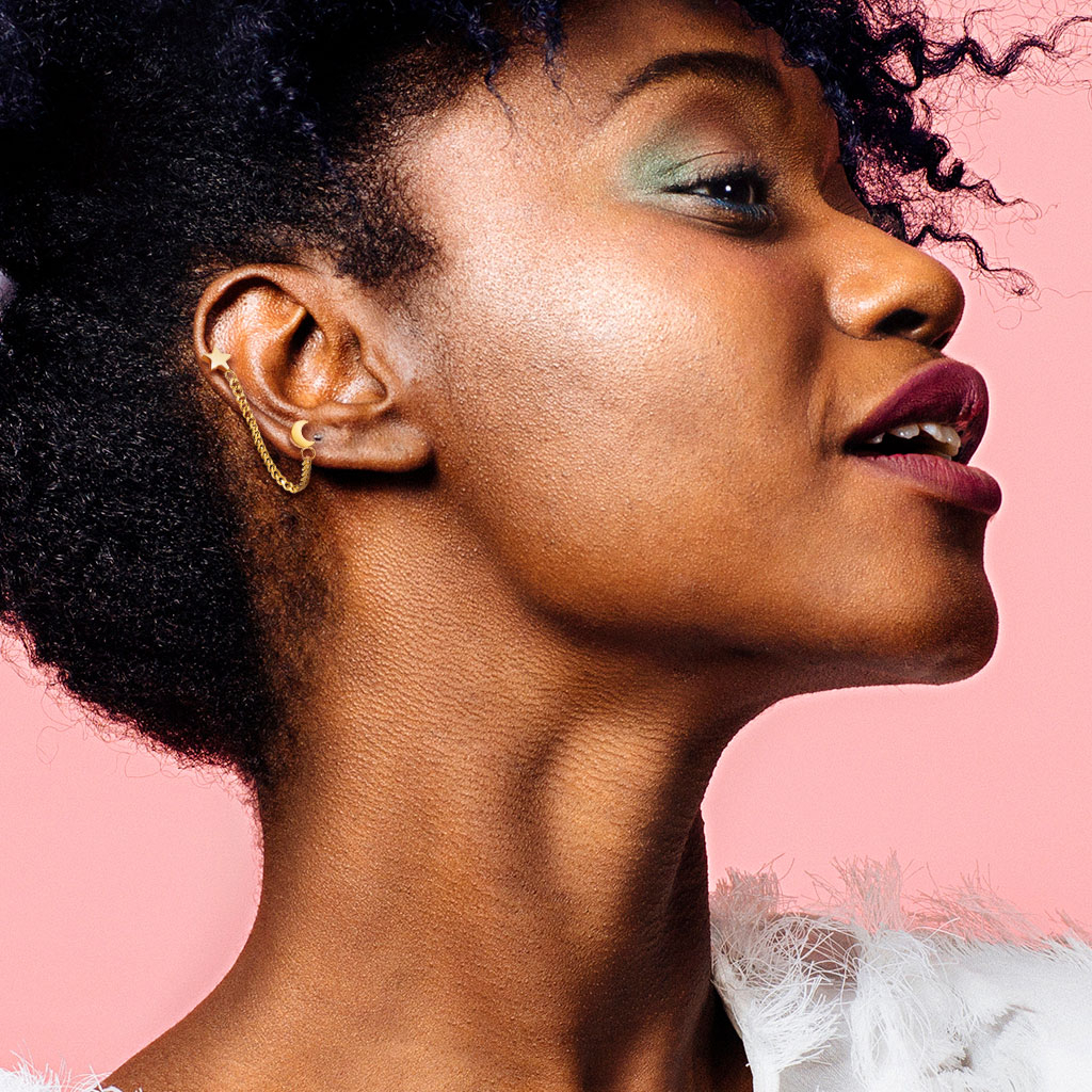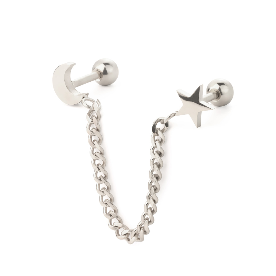 Navn: Halvmåne- og stjernepiercing forbundet med kæde