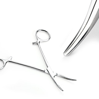 Dette hæmostatiske værktøj med en buet ende er 14 cm langt.