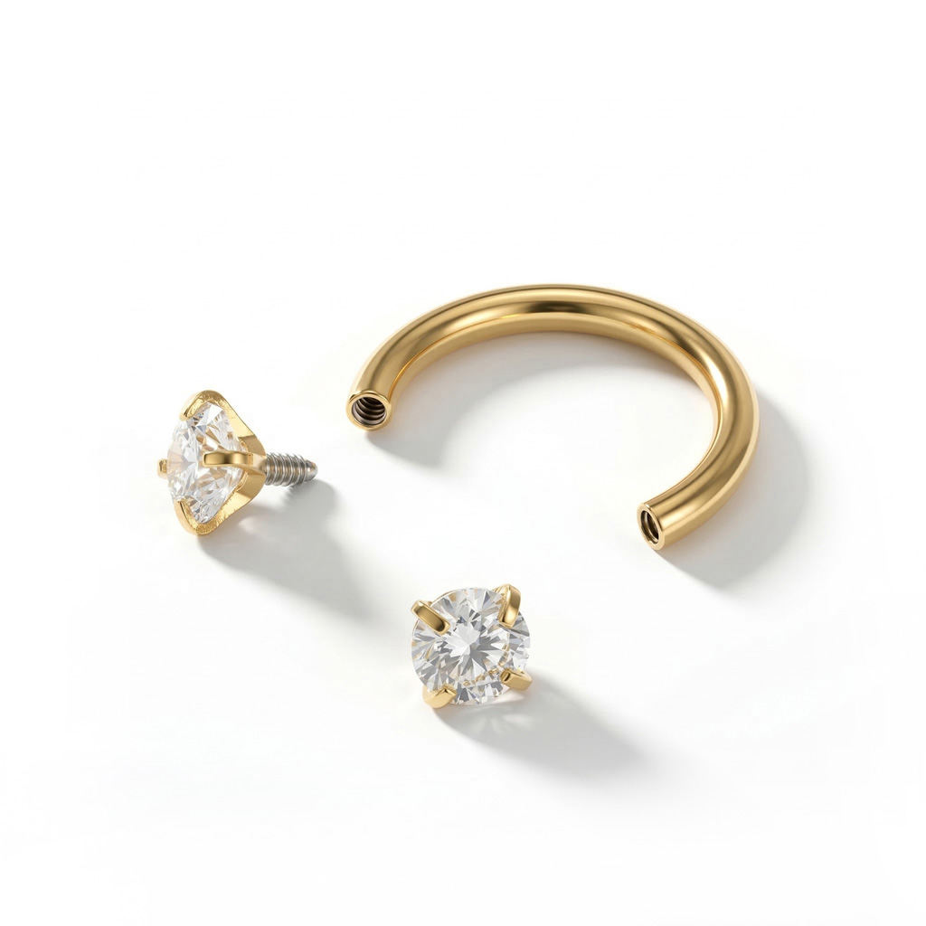 Stenene skrues som sagt ned i staven i stedet for ned over staven. Det betyder at hesteskoen har et indvendigt gevind. Gevindet er dermed skjult og risikoen for rifter indvendig i din piercing, lavet af gevindet, minimeres betydeligt.
