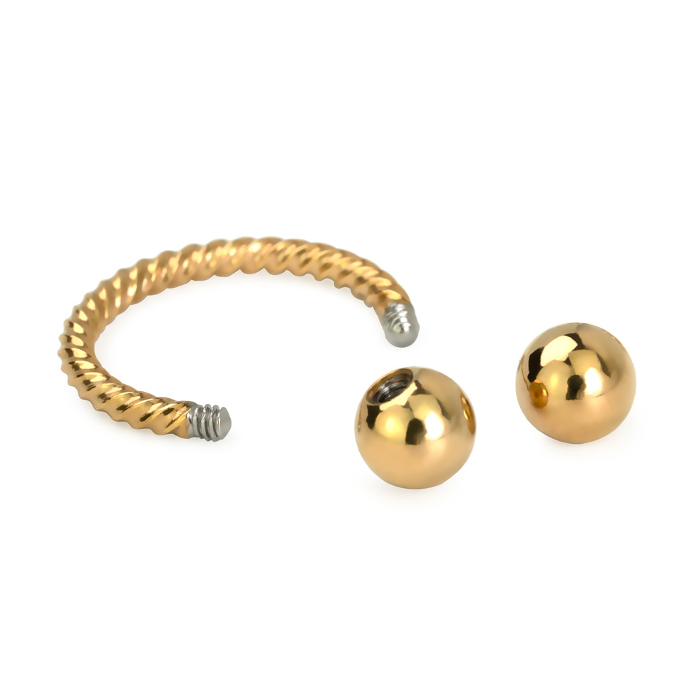 Denne hestesko ser ud som de fleste, hvis man ikke lige lægger mærke til detaljen som er på smykket fra kugle til kugle - Selve tråden er blevet twistet så den har samme form som et reb. Det giver et helt andet look, som både kan se mere råt ud, men også mere stilet. Det ligner ikke længere "bare" et startsmykke man har i, nu er der også nogle detaljer på smykket. Du kan vælge din hestesko blandt flere forskellige farver og trådtykkelser. Kuglestørrelse og diameter hænger sammen med trådtykkelsen, men det kan du se i boksen herover.