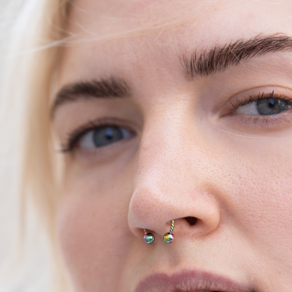 Placering: Tragus, Spiderbite, Snug, Snakebite, Septum, Rook, Nipple, Lower labret, Labia, Helix, Daith, Klitorisforhud, Anti-tragus, Forward helix, Angelbite