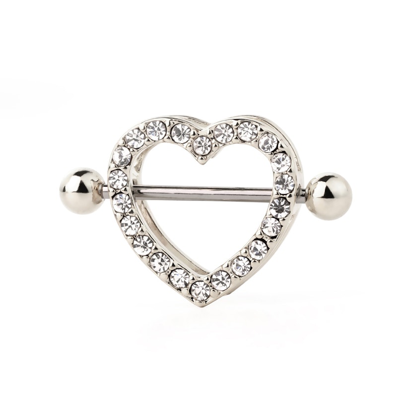 Navn: Hjerteformet brystpiercing med skinnende sten