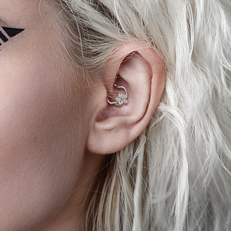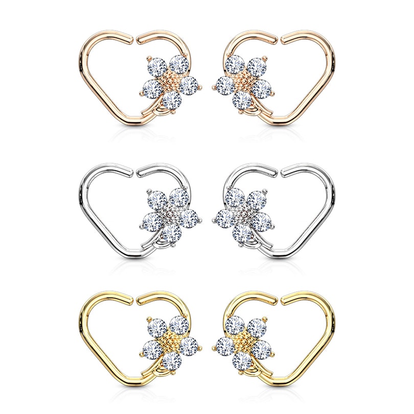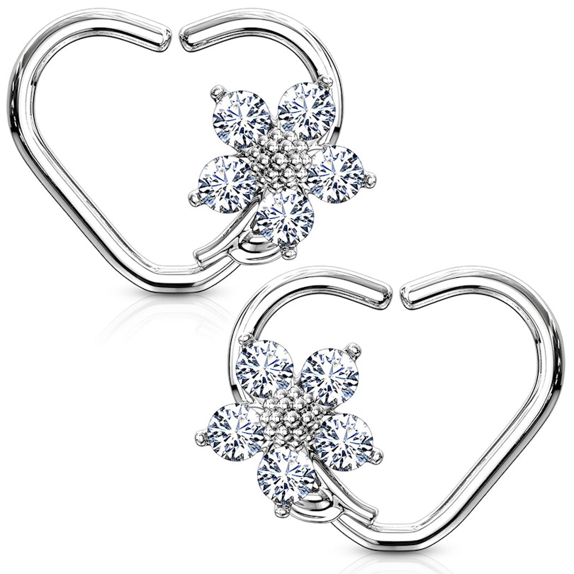 Navn: Hjerteformet ørepiercing med blomst af sten