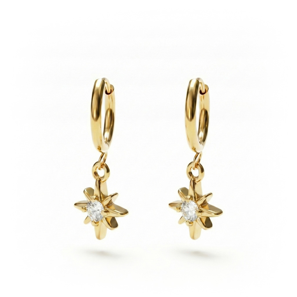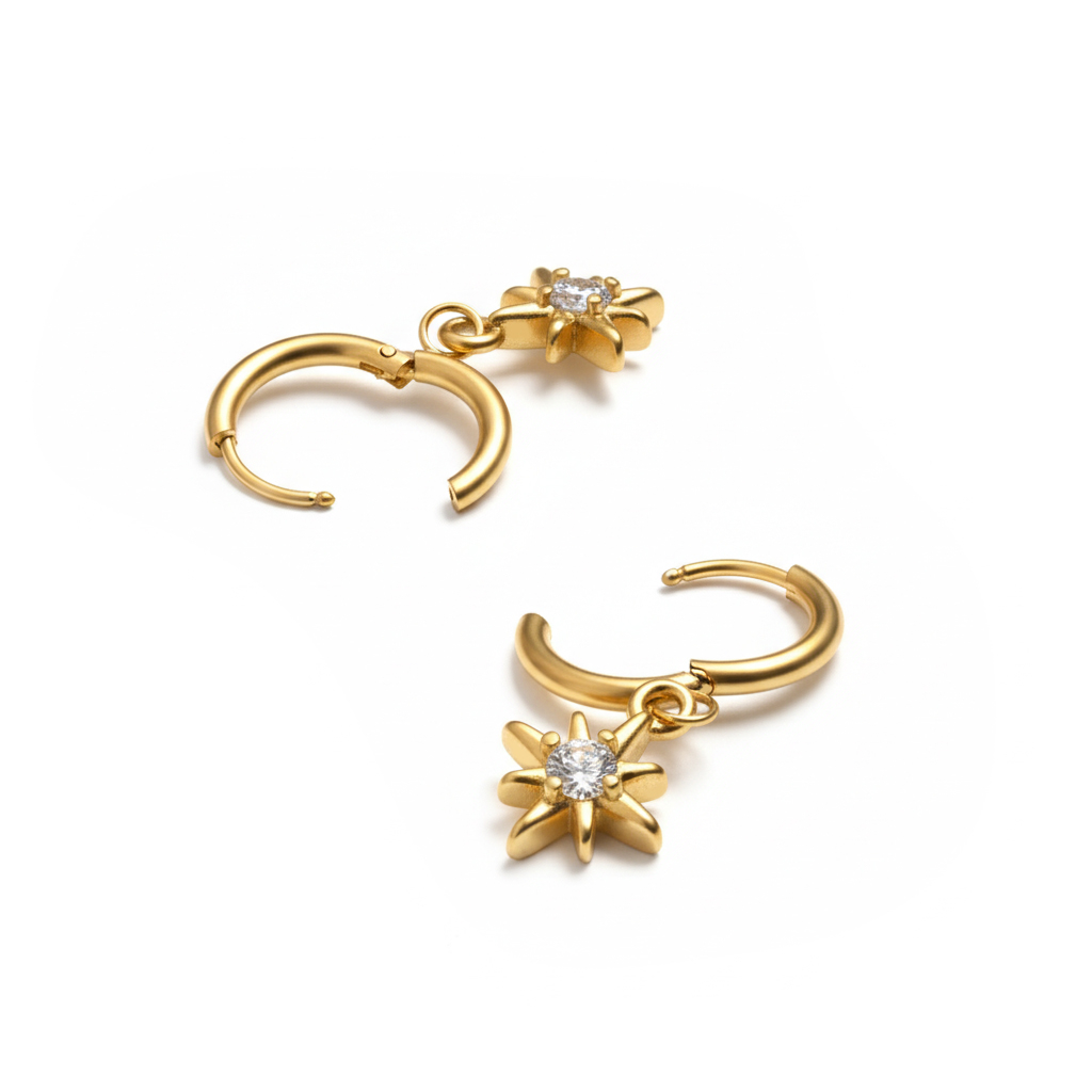 t huggie-par med solstrålevedhæng føles som et lille boost til humøret, hver gang du har dem på. Hver ring har et detaljeret vedhæng med solskin, der stråler fra en sten i midten og giver din øre-stack personlighed uden at blive for meget.
