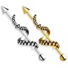 Hvis du leder efter noget helt unikt og top nice til din industrial piercing, så er du landet det rette sted! Denne fede industrial stav er formet lidt som en pil, med en spike i den ene ende og en kugle i den anden. Det er dog det midterste stykke, mellem de to piercinghuller, som er det mest interessante her. For mellem de to ender, finder du nemlig en virkelig flot og meget livagtig blækspruttearm. "Armen" er sort i bunden og er endda dekoreret med små sugekopper fra ende til anden.
