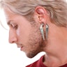 En hanger er, som navnet næsten siger, noget der hænger. En hanger kendetegnes også ved at den ikke findes i særligt mange størrelser, da det ikke er selve delen der går igennem øret der er udsmykningen (som ved en almindelig plug eller tunnel), men derimod det der hænger. Derfor kan dette smykke bruges hvis du har et hul i øret på minimum 10 mm. Jo større dit hul er, jo mere vil det hænge. Og selvom dit hul er f.eks. 20 mm. så falder smykket ikke ud pga. sin udformning. Her er det en keyhole hanger, hvor udskæringen i midten af smykket har samme form som et nøglehul. På hver side af nøglehullet er et abaloneindlæg. Det samme er der på den anden side, så du kan bruge smykket i både højre og venstre øre. Da abalone er et naturmateriale, skal du forvente forskelle i indlæggene.