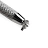 Værktøjet har fire tynde tænder eller fangarme, der åbner op, når du trykker på enden, og kan holde kugler på 3-6 mm, imens du skruer dem på din stav, ring eller labret. Bare sørg for, at gevindet på kuglen vender udad.