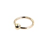 Smuk og enkelt udført kuglering i det helt klassiske design, men her af 14 karat guld i stedet for de mere gængse materialevalg, som typisk ses brugt til kugleringe. Kugleringe er et meget populært valg på grund af det simple design uden skruedele eller gevind, hvor der ellers ofte samler sig skidt og bakterier. Kuglen sidder ganske enkelt fast ved at den sidder i spænd i mellem de to stærke trådender. Kuglen klikkes på plads via to små fordybninger i siden af kuglen, som ringen glides ind i og når først den sidder der, så sidder den rigtig godt fast.