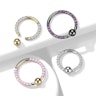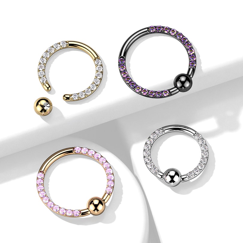 Det er svært at finde en kuglering med et elegant design som dette smykke. Skinnende CZ sten pryder forsiden af ringen på begge sider, hvilket gør den til et iøjenfaldende smykke til din septum eller ørepiercinger. Men de gode nyheder slutter ikke her. Denne ring er lavet af G23 titanium, så du får det bedste til din piercing. Titanium piercingsmykker er sikre for alle hudtyper, så du kan være helt rolig når du vælger allergivenligt titanium til din piercing.