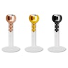 Du vælger selv hvilken kombination du ønsker til din piercing. Uanset hvilken model du vælger, vil toppen af smykket været udstyret med en klar sten. Stenen er nedsænket i en 2,5 mm. lille kugle, som er den du selv vælger farven på.