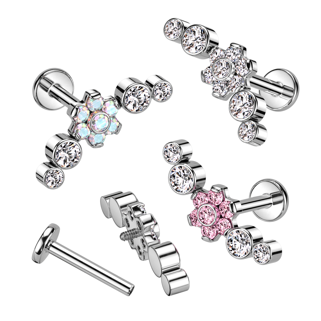 Denne labret er lavet af titanium, et af de mest holdbare og anbefalede materialer til piercingsmykker. Den har indvendigt gevind, dvs. toppen skrues ind i staven, så du ikke skraber huden, når du sætter smykket i din piercing.