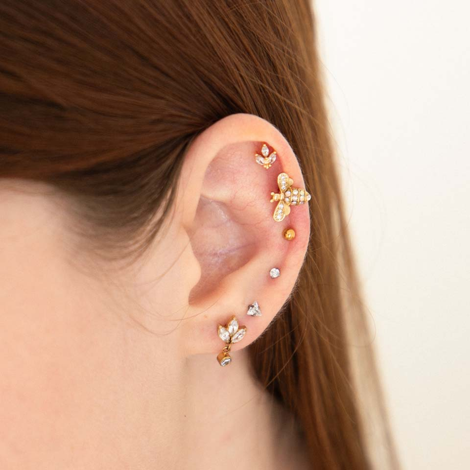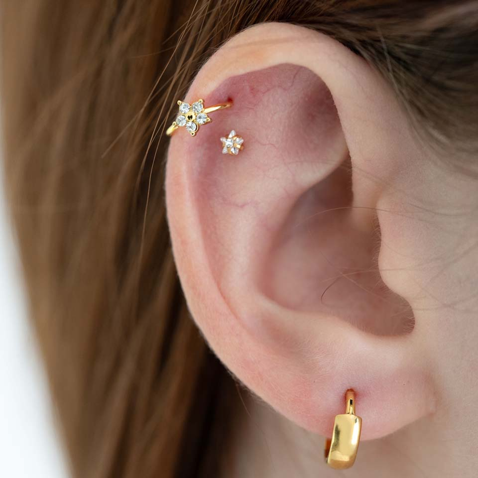 Placering: Tragus, Spiderbite, Snakebite, Medusa, Madonna, Lower labret, Øreflip, Helix, Conch, Forward helix, Angelbite