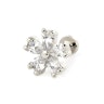 Som du kan høre af navnet, så er denne labret dekoreret med en flot fembladet blomst. Bladende på blomsten er faktisk lavet af sten. Det vil sige at blomsten tager form ved hjælp af fem dråbeformede klare sten, som sidder og funkler på toppen af dette smykke.