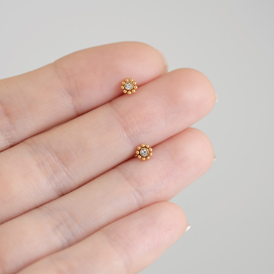 Denne smukke labret bruger jeg som supplement til min kugle-clicker. Jeg synes, motivet ligner en sol. De små kugler omkranser zirkonia-kristallet som stråler. Vidunderligt. Da jeg bærer sølv- og guld Smykker, har jeg unnet mig både den guld- og sølvvariant. Jeg har dog en bøn til bodymod-teamet: disse skatte i titanium! Men også disse i kirurgisk stål er godt tolereret. I denne ånd: Hav solen i hjertet og få fat i disse vidunderlige stykker!