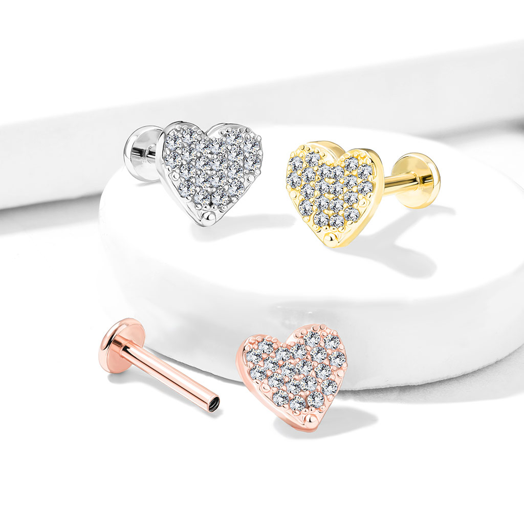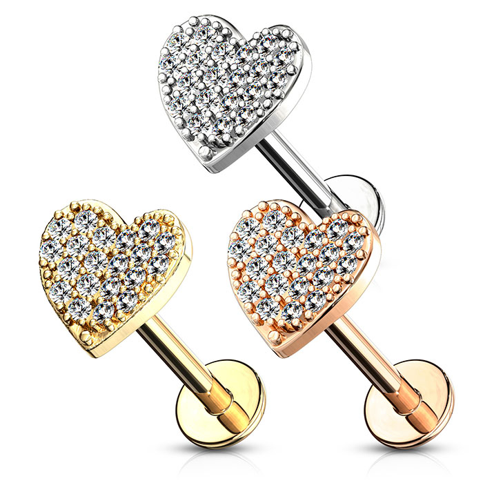 Navn: Labret med indvendigt gevind og stenbesat hjertetop