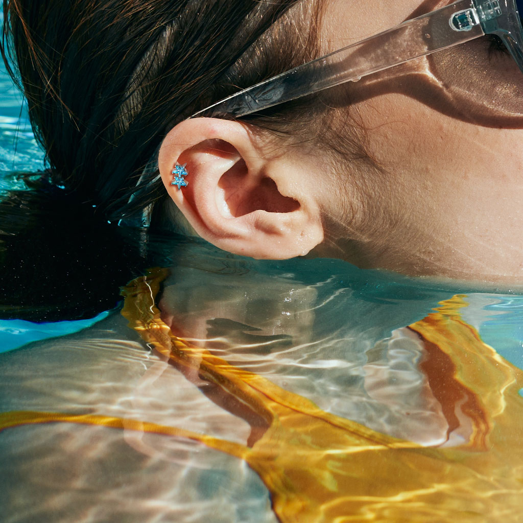 Hvad er bedre end en stjerne? To stjerner selvfølgelig! Og det er præcis hvad du får med denne blændende labret. Tilføj dette smykke til dine ørepiercinger og alle vil beundre den glitter som kommer fra disse smukke stjerner. Labretten har et indvendigt gevind, der er mere behageligt at isætte i en piercing end smykker med udvendigt gevind.