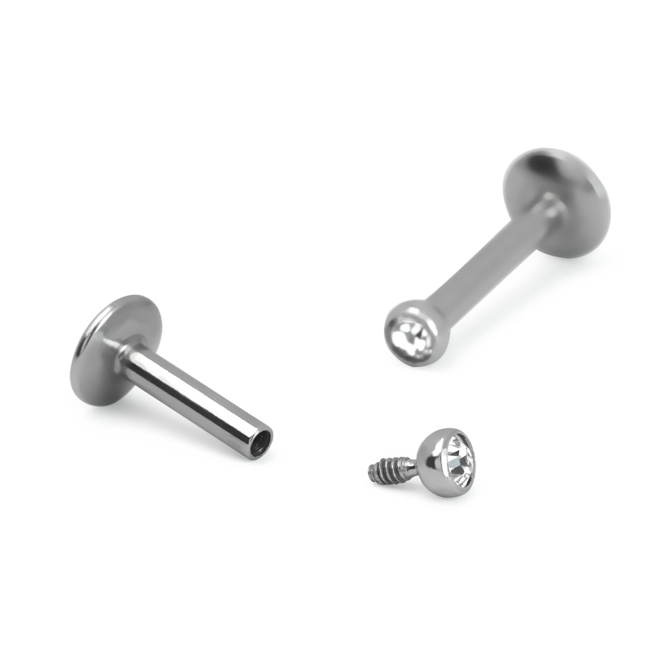 Labretten her har et ekstra smart og praktisk tvist, for den er nemlig forsynet med et indvendigt skruegevind. Det betyder at du kan føre staven helt igennem din piercing, før du skruer toppen på. Din hud vil altså slet ikke komme i berøring med selve skruedelen.