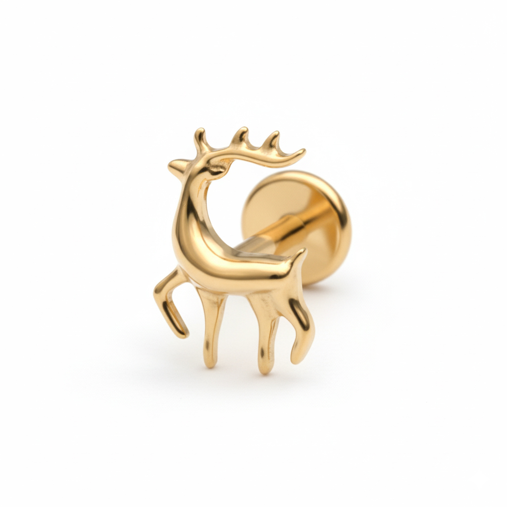 En labret med rensdyr af titanium giver din øre-stack lidt juleånd. Smykket er formet som et rensdyr i trav og minder dig om de hyggelige lys, stille aftener og tilbagelænede glæder sidst på året, der aldrig vil gå af mode.